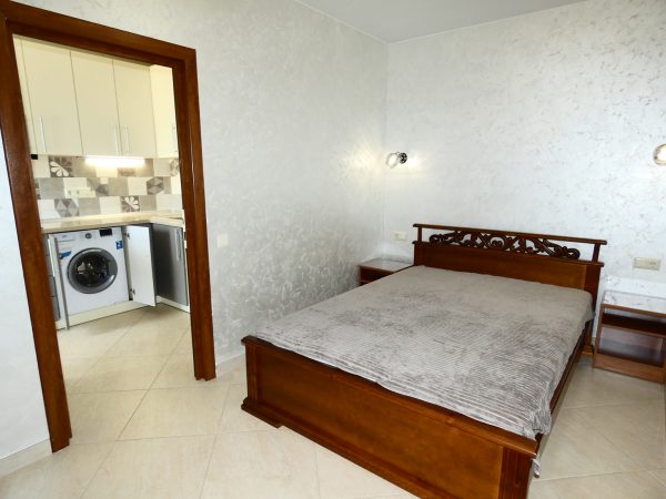 В комнатах расположены большие деревянные кровати: большая комната – двуспальная кровать шириной 1,8 м. и дополнительный раскладной диван шириной 1,2 м., в маленьком комнате – двуспальная кровать шириной 1,4 м. В каждой комнате имеется SMART телевизор с цифровым телевидением и подключенным интернетом. В санузле установлен индивидуальный электрический бойлер на 80 литров.